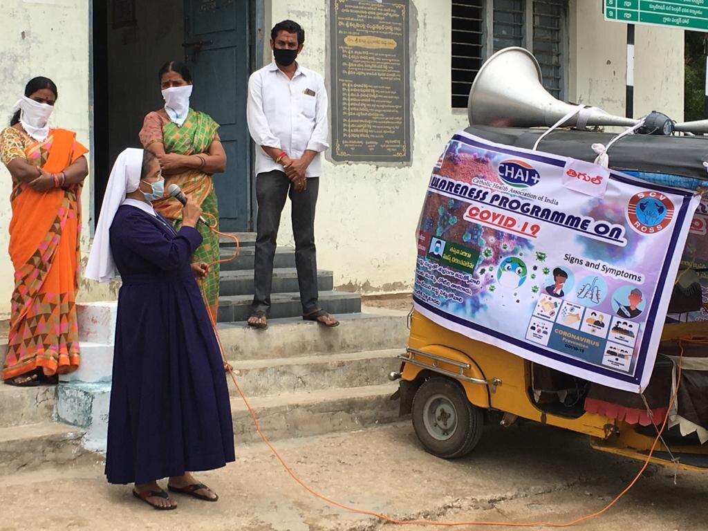 Awareness activity done by SCV ROSS, Alirajpet, by Sr. Catherene on COVID 19 situation, preventive measures and giving awareness on identification of disease and early diagnosis.